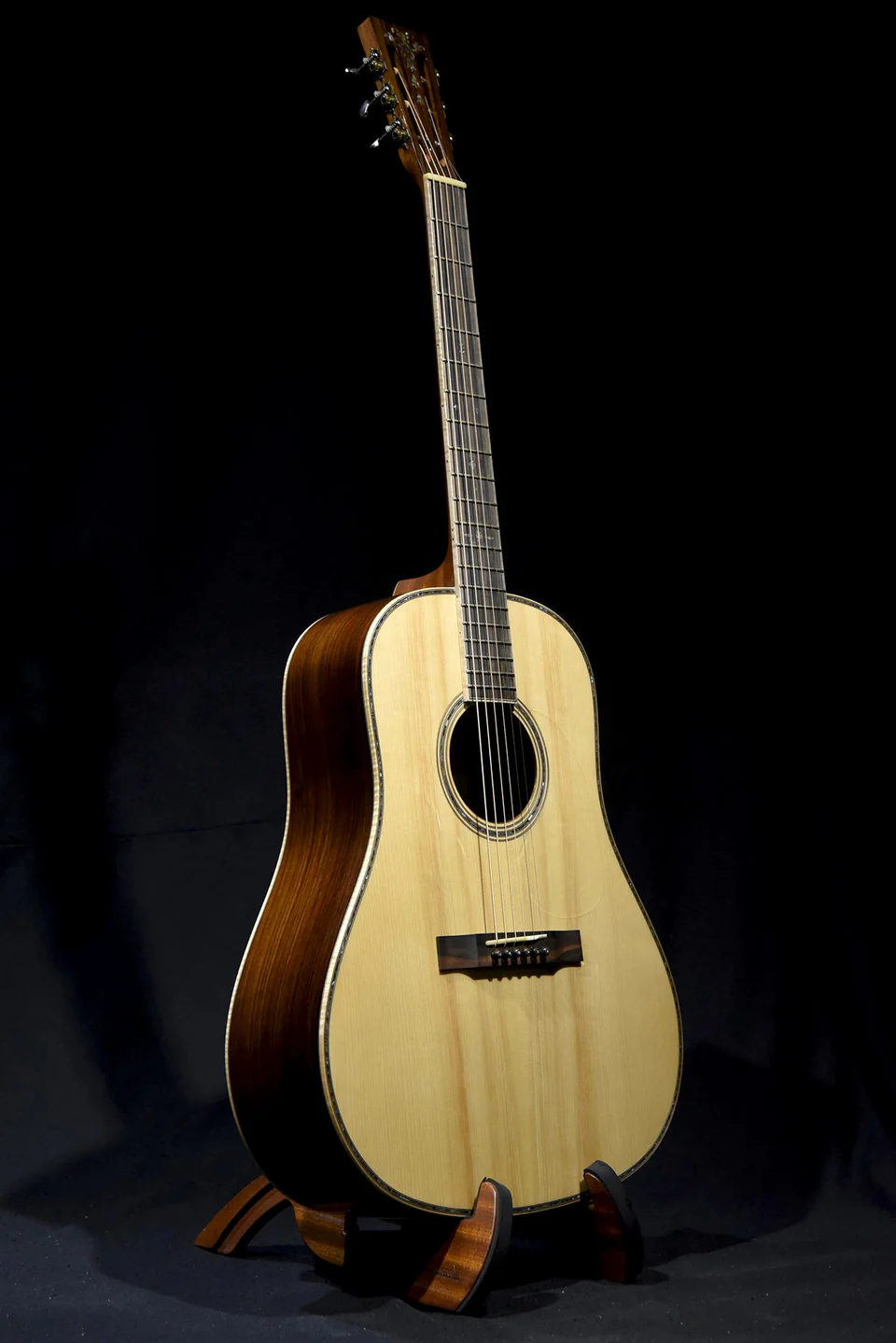 Maestro blends classic steel-string guitar traditions with modern refinements. Solid tops, hand-selected back and sides, and meticulous detailing (sound-ports, bevels, custom voicing) give each guitar an expressive, open tone with excellent projection and dynamic response. Whether fingerstyle or strumming, every note rings with clarity and warmth.