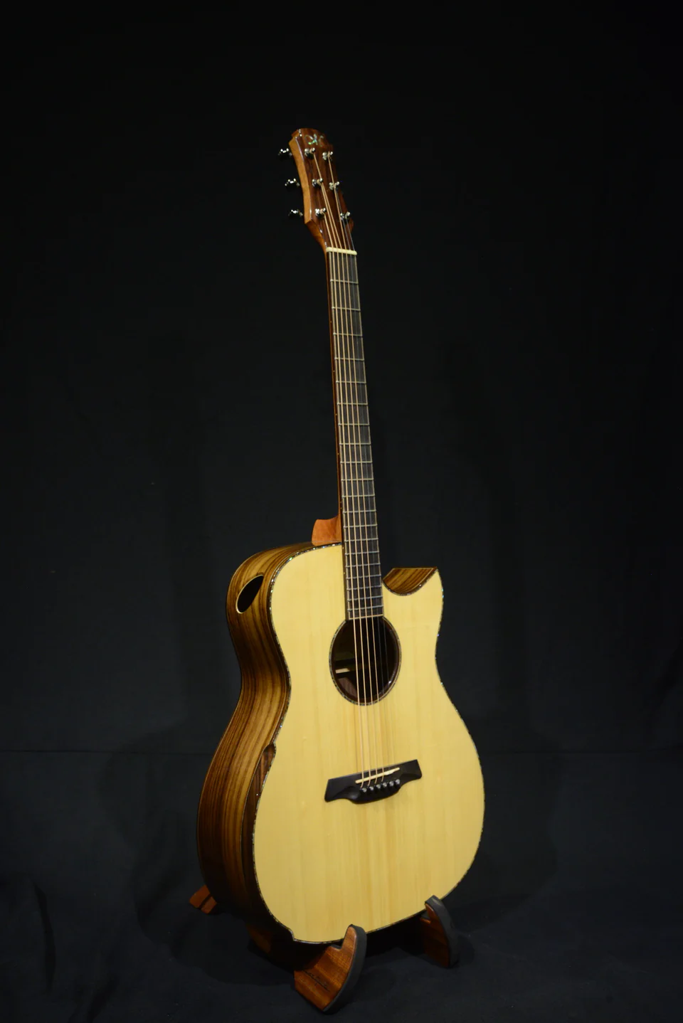 Maestro Guitars are made for musicians who demand more than good sound — you want nuance, responsiveness, and build-quality that a lifetime of playing can rely on. Every instrument in the Maestro line is handmade in Singapore by Ho Zen Yong and his team, using premium tonewoods and carefully voiced bracing. The result is a guitar that feels alive beneath your fingers, delivers clear, expressive tone, and invites you to play deeper.
